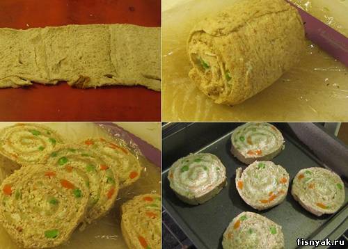 После того как смесь немного остыла, намажьте её на хлебный пласт и