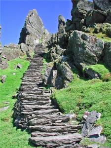 Монастырь Скеллиг Майкл был построен на скалистом острове в 588 году. Он пережил набеги викингов начиная с 823 году и позже был значительно расширен в начале второго тысячелетия. Примерно в начале 13 века он был оставлен, а, начиная с 1500-х годов, Скеллиг-Майкл стал популярным местом для ежегодных паломничеств, между тем совершенно не привлекающим внимания местных жителей.