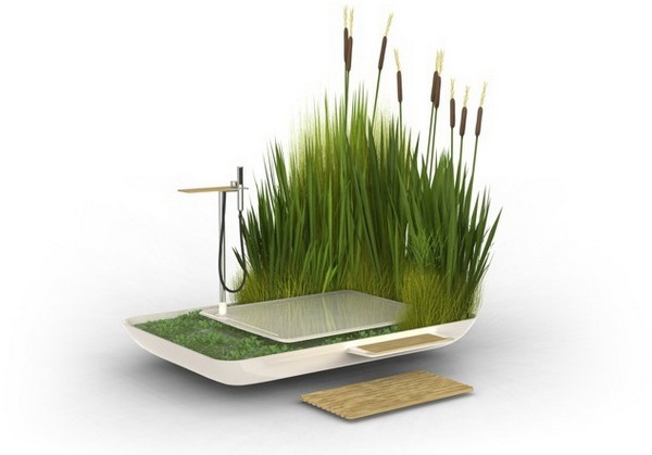 Phyto-Purification Bathroom – это душ, который превратит вашу ванную комнату в природный уголок. Ведь вода, которую вы используете при мытье своего тела, будет уходить не в канализационную систему, а на подпитку камыша, кувшинок и прочих подобных растений, являющихся частью Phyto-Purification Bathroom.